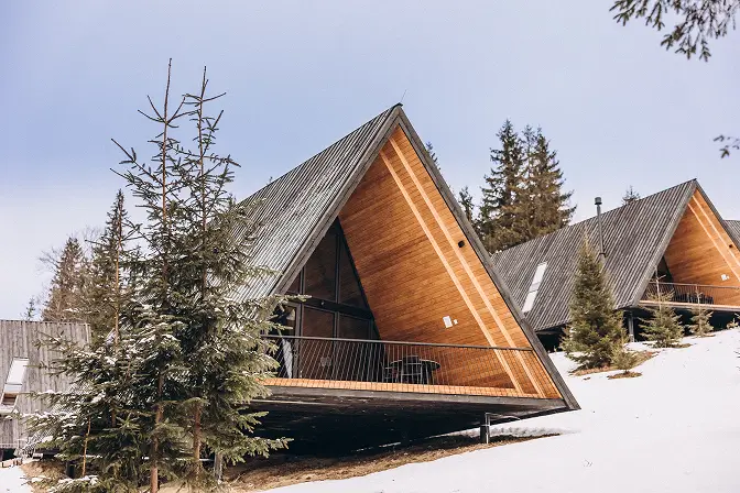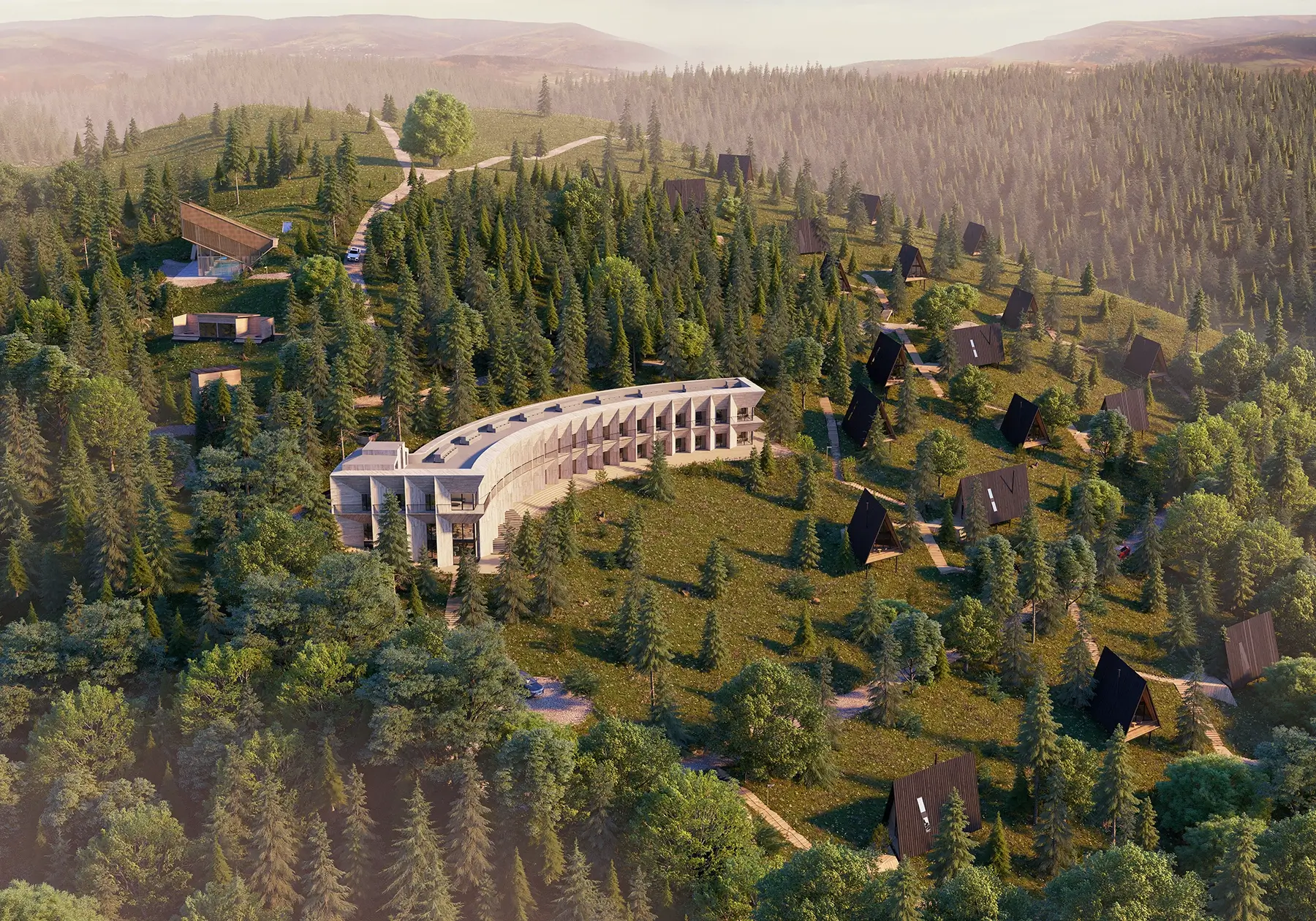 Сучасний простір для відпочинку серед лісу: естетичні будинки, тиша та безконтактний сервіс.